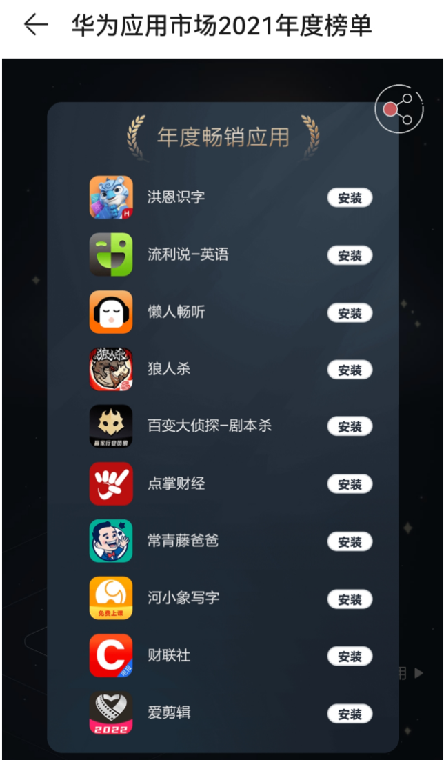 1月20日,华为应用市场发布2021年度榜单。榜单分为年度应用、年度游戏、智慧生活应用榜3类。点掌财经作为财经内容及投资者服务平台荣登年度十大畅销应用榜。