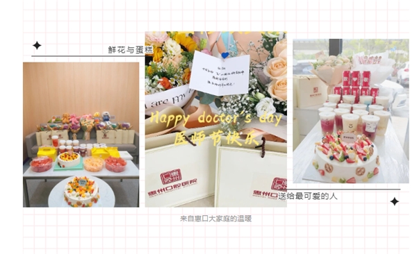 为营造遵医重卫的浓厚氛围,传递对医务工作者的关心关爱,8月19日,在第五个“中国医师节”到来之际,惠州口腔医院院长傅其宏,副院长唐尤超、王臻、王吓勇、朱亚桥、蔡琼欢,院长助理王婷婷、尹慧,护理部主任叶丽娜及部分职能科室负责人,分别前往总院各科室及各分门诊部看望慰问一线医生,为他们送上鲜花和节日纪念品,并致以节日的祝福和诚挚的问候。